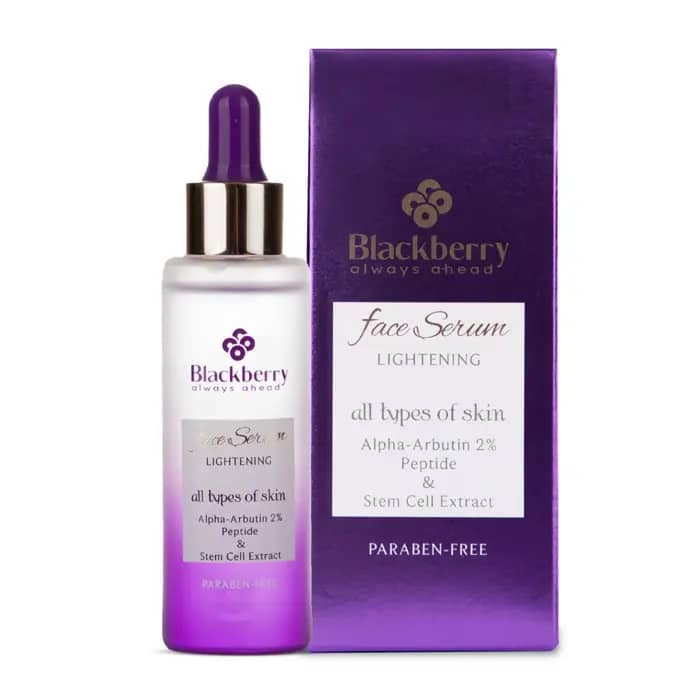 پوست برای محافظت از خود دربرابر اشعههای آفتاب، ملانین را در سلولهای ملانوسیت تولید و توسط ملانوزومها به صورت یکدست در سرتاسر سطح پوست پخش میکند. اما میزان تولید ملانین در هر فردی نسبت به فرد دیگر توسط ژنتیک تعیین میشود و به همین دلیل برخی افراد پوست روشن و برخی دیگر پوست تیره دارند. هرگونه التهاب یا تابش زیاد نور به سطح پوست افرادی که پوست روشن دارند، میتواند به تولید بیشتر ملانین در بعضی از نواحی پوست شود که نتیجه آن تغییر رنگ و تیره شدن پوست در آن نواحی صورت است که یکدست بودن رنگ پوست را تحت تاثیر قرار داده و زیبایی صورت کاهش مییابد. برای رفع این معضلات باید از محصولاتی کمک گرفت که آنزیم تیروزیناز (مسئول اصلی تولید ملانین در پوست) را مهار کرده و مانع تولید ملانین شوند. آلفا-آربوتین یکی از معروفترین و اثباتشدهترین ترکیبات مهارکننده آنزیم تیروزیناز است که با بیشترین درصد ممکن برای محصولات پوستی (یعنی 2%) در این سرم روشن کننده Blackberry مورد استفاده قرار گرفته تا حداکثر میزان اثرگذاری در کاهش لک و روشن شدن پوست، در اختیار مصرفکننده قرار بگیرد. این محصول عصاره کشت سلولی گل مروارید کرهای برگقلب را هم در خود دارد، چون این عصاره با تقویت سیستم دفاعی و آنتی اکسیدانی پوست از ایجاد التهاب و قرمزی در پوست توسط دود سیگار، ترکیبات اکسیدکننده و... جلوگیری میکند و اجازه نمیدهد این مشکلات به تغییر رنگ پوست ختم شوند. همچنین در این سرم از تتراپپتید-30 هم کمک گرفته شده که ترکیبی مفید برای کاهش تاثیرات منفی اشعه UVB بوده و اجازه نمیدهد این اشعه موجب عوض شدن رنگ پوست گردد. این پپتید به دلیل توانایی در کاهش دادن جای لک ناشی از آکنه و ملاسما، یک گزینه بسیار مناسب برای همراهی با آلفا-آربوتین است. بهمنظور تقویت خاصیت آنتیاکسیدانی و بالطبع آن، تنظیم شدن فرآیند ملانینسازی، از عصاره جلبک هیمانتالیا الانگاتا و سدیم آسکوربیل فسفات هم در این محصول بهره گرفته شده تا این سرم یک محصول کامل و ایدهآل برای یکدست کردن رنگ پوست و کاهش لک باشد.